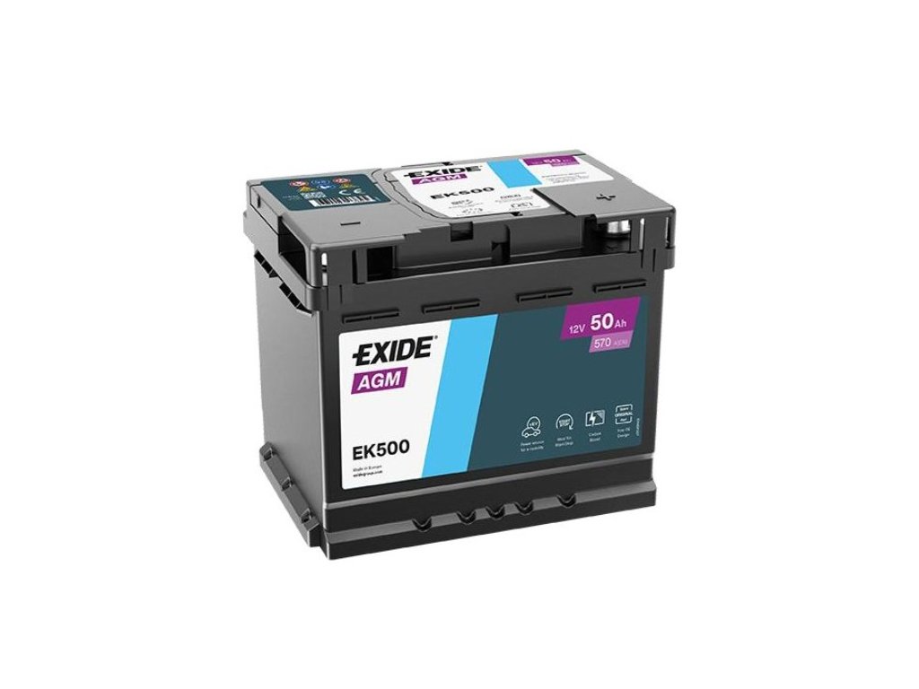 Exide AGM 12V 50Ah 570A EK500 nabitá autobatéria + Reflexný prívesok FOOT